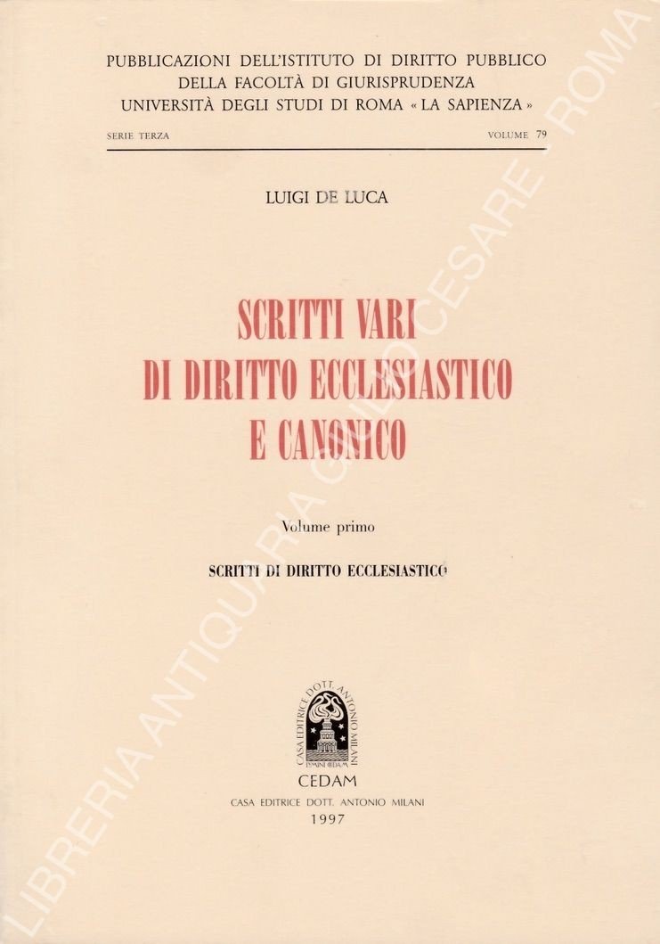 Scritti vari di diritto ecclesiastico e canonico. Vol. I - Scritti di diritto ecclesiastico; Vol. II - Scritti di diritto canonico | Livres anciens et modernes | De Luca Luigi