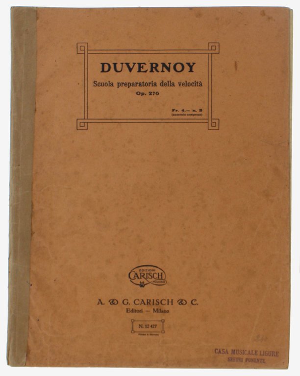 SCUOLA PREPARATORIA DELLA VELOCITA'. 20 Studi - Esercizi Senza Ottave Op. 276. | Livres anciens et modernes | Duvernoy G.B.