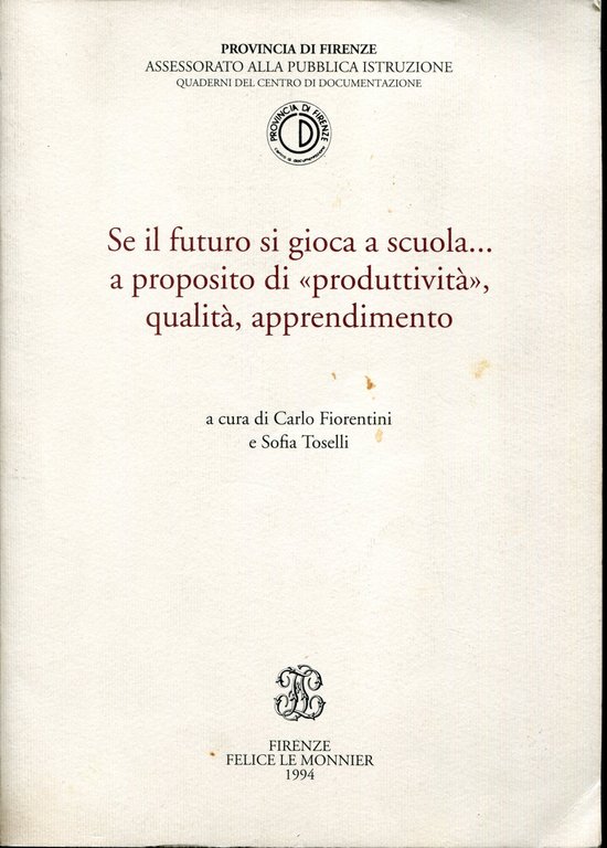 Se il futuro si gioca a scuola...: a proposito di produttività, qualità, apprendimento | Livres anciens et modernes | a cura di Carlo Fiorentini e Sofia Toselli, ,a cura di Carlo Fiorentini e Sofia Toselli