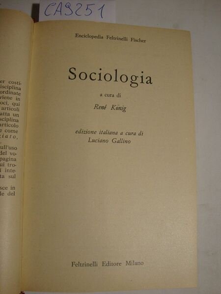 (Collana : Enciclopedia Feltrinelli Fischer - n. 5) Ogni vol. dell'Enciclopedia Feltrinelli Fischer costituisce una vera e propria monografia su una discplina particolare; in questo vol. lo studio della sociologia come una scienza empirica indipendente. Edizione a cura di Luciano Gallino, con illustr. in b.n. n.t.