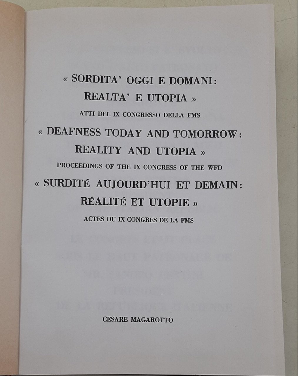 Sordita' oggi e domani: realta' e utopia - Atti del IX Congresso della FMS | Livres anciens et modernes | AA.VV.