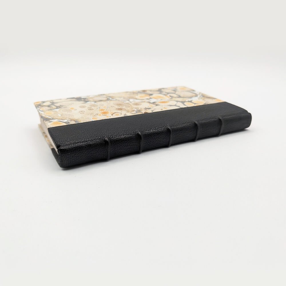 Duodecimo, 120 pp. Recent binding without signature. Half Moroccan binding with marbled paper covers, open spine with 5 raised bands, untitled. New endpapers, beveled edges.