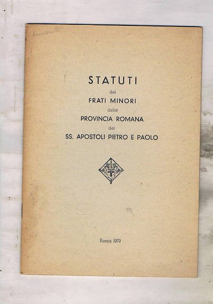 Statuti dei frati minori della Provincia Romana dei SS. Apostoli Pietro e Paolo. | Livres anciens et modernes |