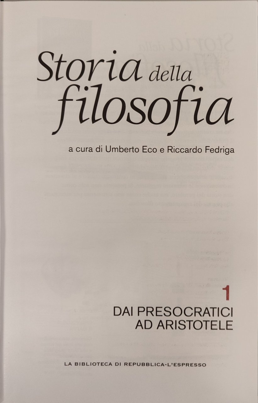 Storia della filosofia. volumi da 1 a 10 | Livres anciens et modernes | a cura di Umberto Eco e Riccardo Fedriga, ,a cura di Umberto Eco e Riccardo Fedriga