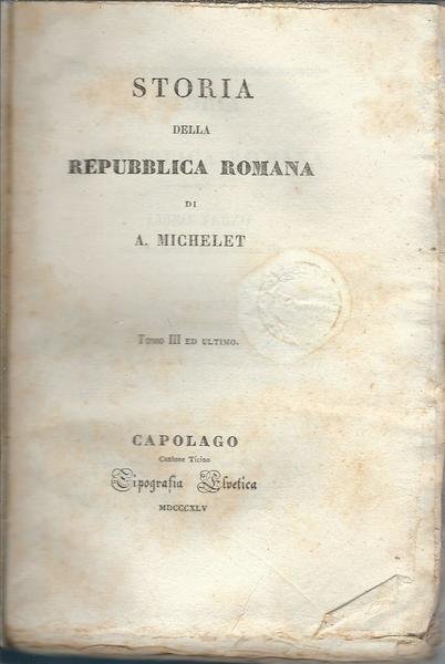 STORIA DELLA REPUBBLICA ROMANA - TOMO TERZO ED ULTIMO | Livres anciens et modernes | A. Michelet