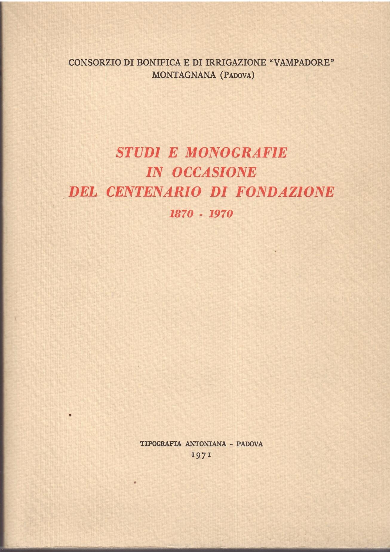 STUDI E MONOGRAFIE IN OCCASIONE DEL CENTENARIO DI FONDAZIONE ( 1870 - 1970 )