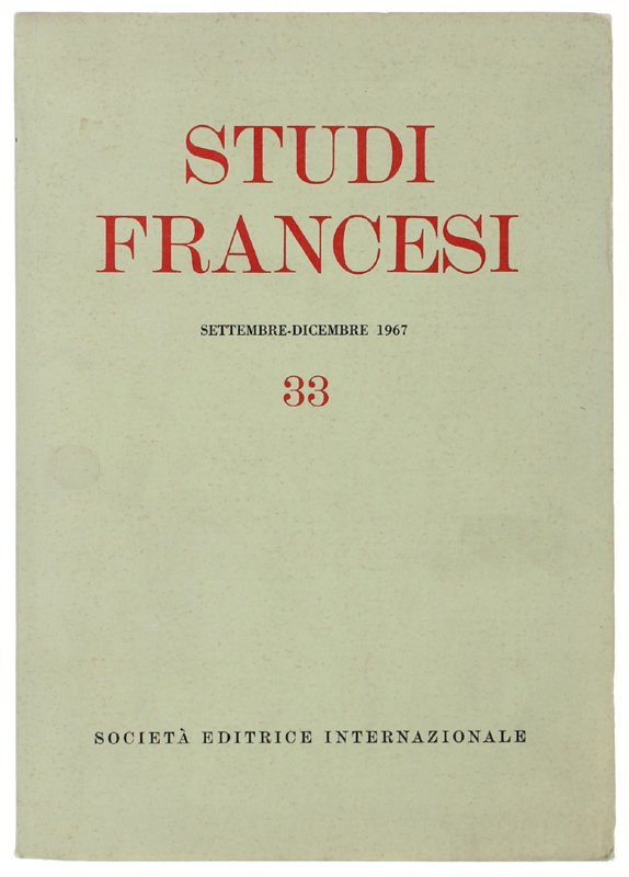 STUDI FRANCESI n.33. Settembre-dicembre 1967 | Livres anciens et modernes |