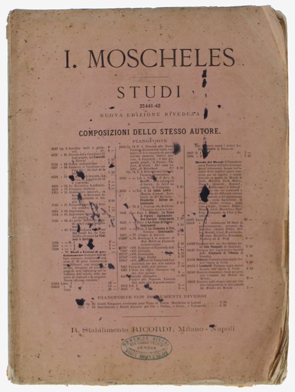 STUDI PER PIANOFORTE o lezioni di perfezionamento destinate agli allievi avanzati contenenti una serie di 24 pezzi caratteristici nei differenti toni maggiori e minori. 35443 - LIBRO II (dal N° 13 al N° 24) | Livres anciens et modernes | Moscheles I.
