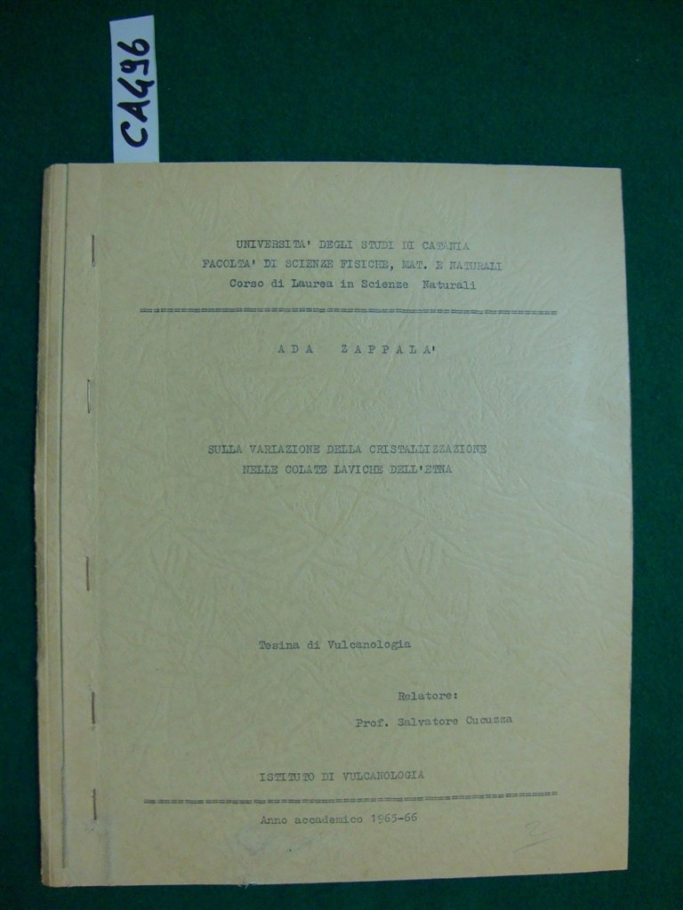 Sulla variazione della cristallizzazione nelle colate laviche dell'Etna - (Tesi di Laurea) | Livres anciens et modernes | Zappalà Ada