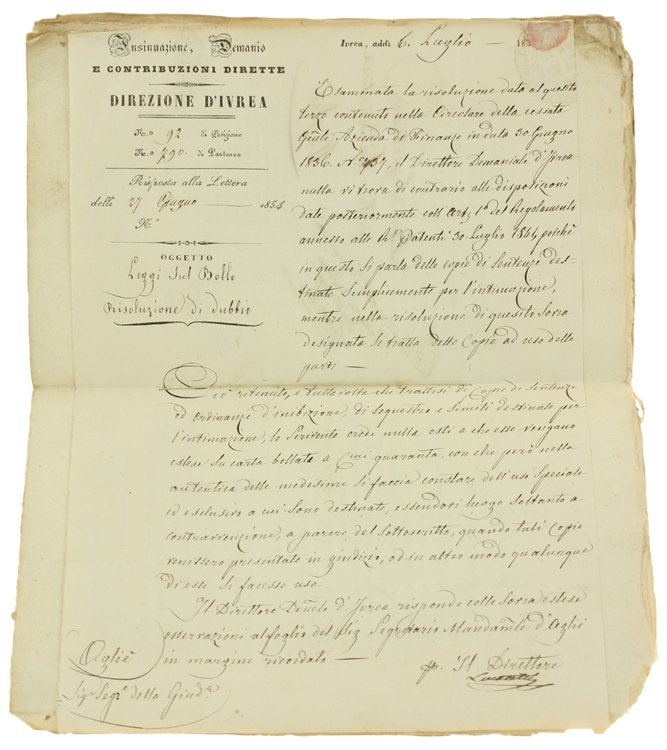 SUNTO ANALITICO ALFABETICO DELLE DISPOSIZIONI EMANATE col Regio Editto 5 marzo 1836, e dal R. Biglietto 28 maggio succesivo… relativamente alla Carta Bollata. | Livres anciens et modernes | Generale Azienda Di Finanze.