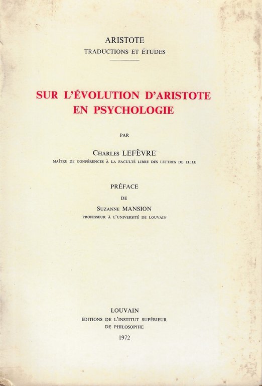 Sur l'évolution d'Aristote en psychologie | Livres anciens et modernes | Lefèvre, Charles, ,Lefèvre, Charles