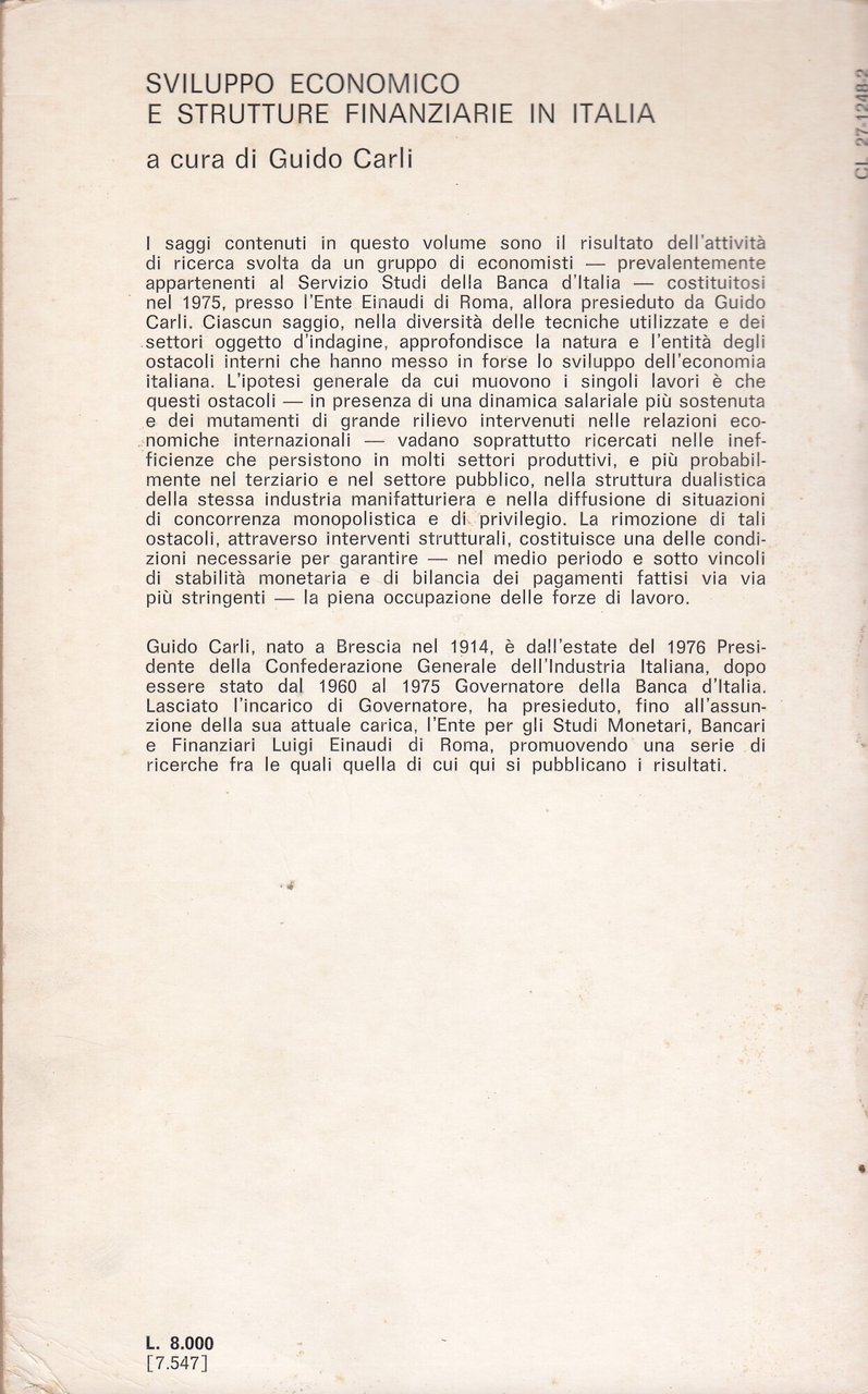 Sviluppo economico e strutture finanziarie in Italia | Livres anciens et modernes | Guido Carli, ,Guido Carli