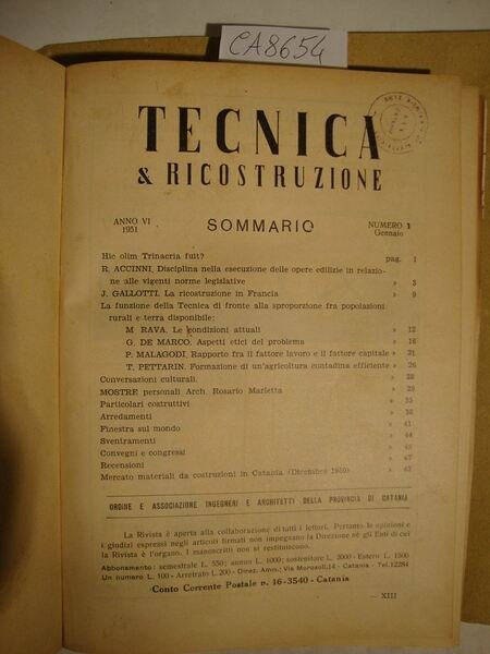 Tecnica e ricostruzione | Livres anciens et modernes | (Autore Non Indicato)