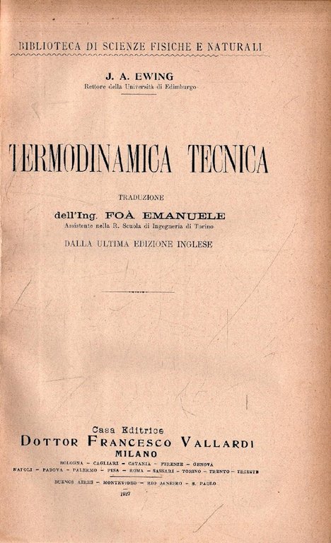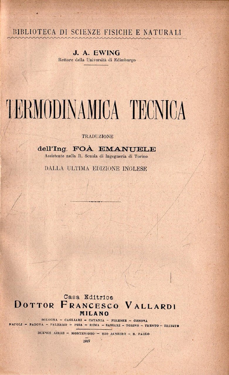 Termodinamica Tecnica | Livres anciens et modernes | J. A. Ewing, Ing. Foà Emanuele, a cura di, ,J. A. Ewing, Ing. Foà Emanuele, a cura di