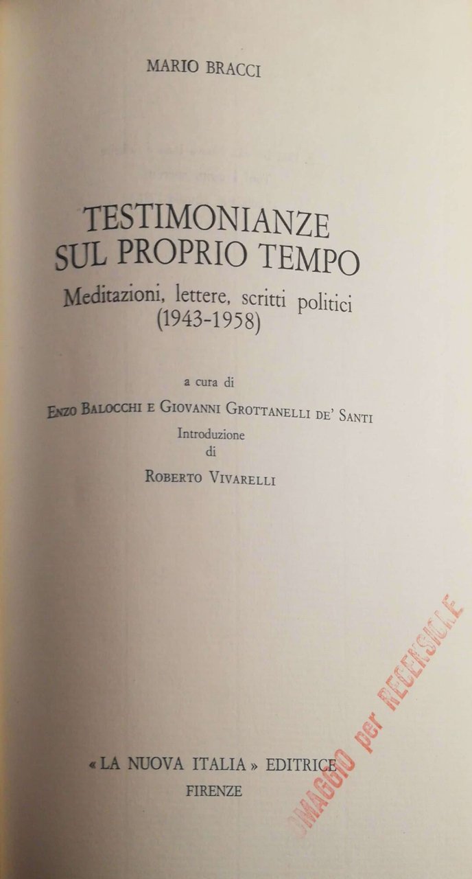 Testimonianze sul proprio tempo: meditazioni, lettere, scritti politici 1943-1958 | Livres anciens et modernes | Mario Bracci, ,Mario Bracci
