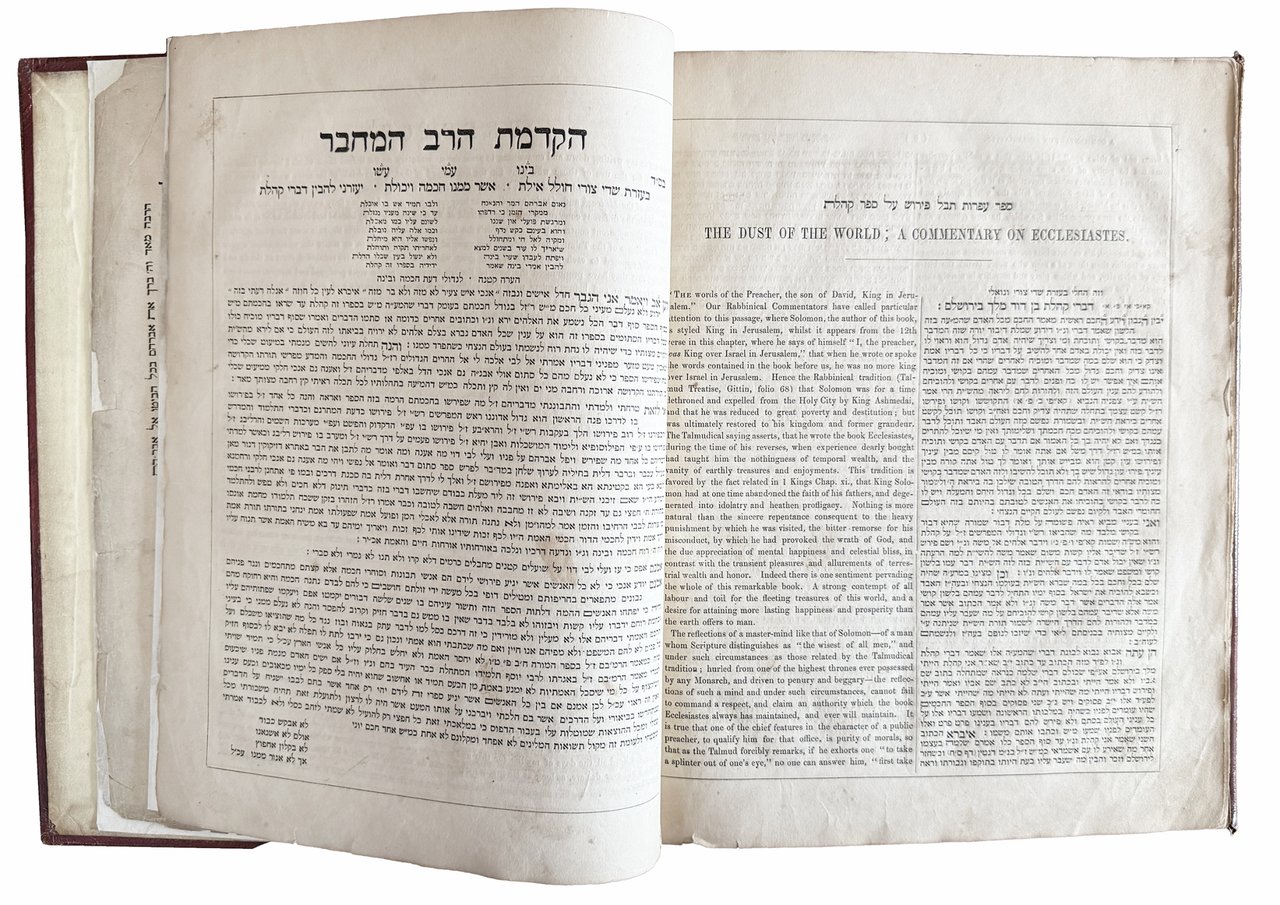 The dust of the world: a commentary on the Book of Ecclesiastes [presentation copy to the King of Denmark] | Livres anciens et modernes | BELAÏS, Rabbi Abraham (1773-1853)