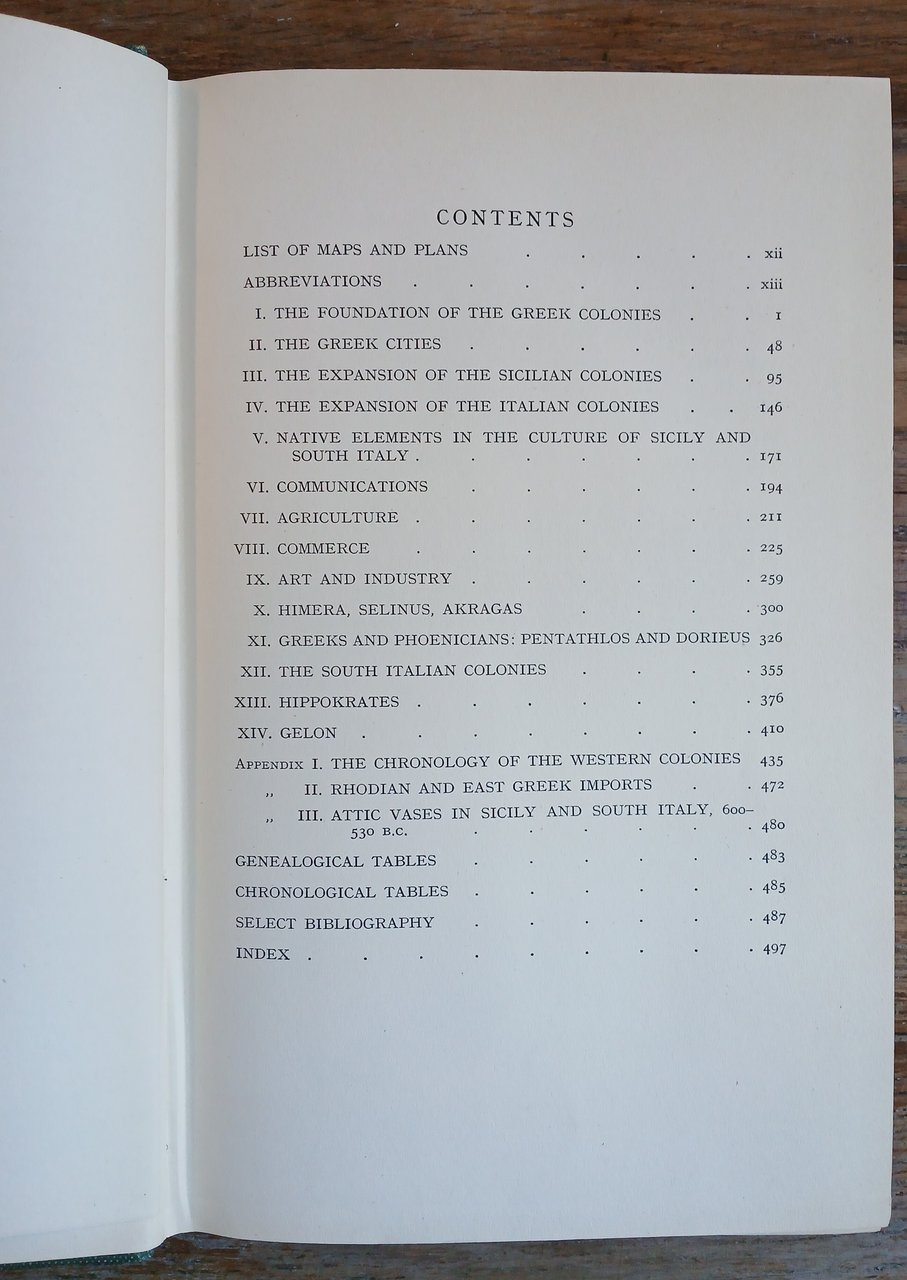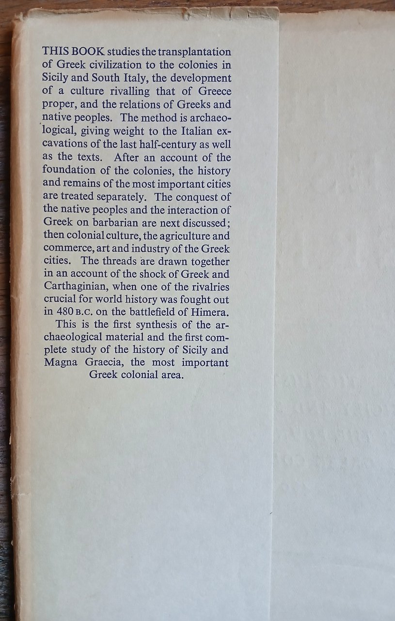 (Magna Grecia - Archeologia in Italia Meridionale - Sicilia - Grecia d'Occidente - Colonizzazione greca in Occidente) In 8°, legatura editoriale in piena tela verde, titolo, fregio e filetti in oro al dorso, sovraccoperta con titoli a stampa, pp. XIV,504, con IX mappe e piante a piena pagina nel testo. Prima edizione. Strappetti marginali alla sovraccoperta protettiva, per altro volume in ottimo stato di conservazione.