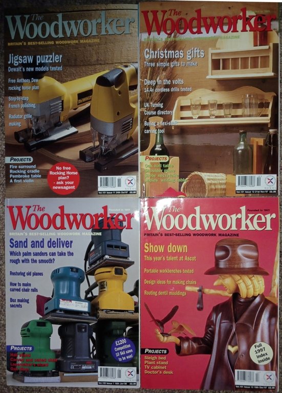 Four copies. No marks or inscriptions. A little creasing to covers. Four very clean very tight copies with bright unmarked boards. Total of 400pp. Best-selling woodwork magazine with a wealth of projects, techniques, skills, joints and tools and much more. Very well illustrated instructions mostly in colour.