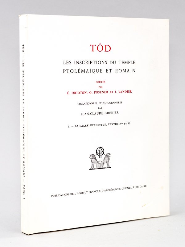 Tôd. Les Inscriptions du Temple Ptolémaïque et Romain. I : La salle hypostyle, textes n° 1-172 | Livres anciens et modernes | Drioton, E., Posener, G., Vandier, J.