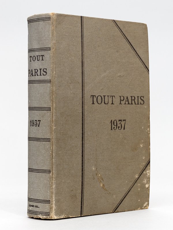 Tout-Paris. Annuaire de la Société Parisienne 1937. Noms & adresses, classés par noms, par Professions et par Rues. High-life, colonie étrangère, fonctionnaires, corps diplomatique, monde politique, magistrature, armée, clergé, sciences, lettres, beaux-arts, Haute finance, artistes, membres des cercles, propriétaires et rentiers, etc. suivi d'un Dictionnaire des Pseudonymes