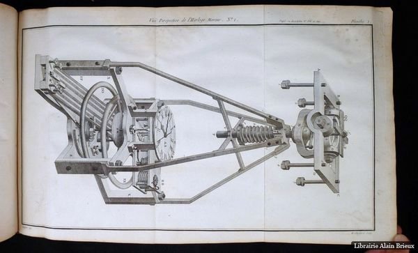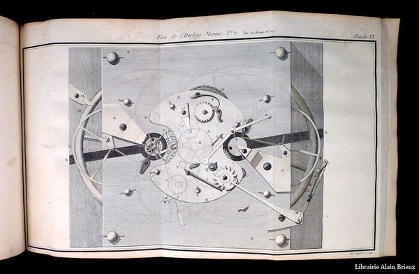 1773, 1773, in-4, LX-590 pages, [1] feuillet blanc, 27 planches dépliantes, basane havane de l'époque, dos à nerfs et fleuronné, pièce de titre rouge, tranches rouges, Rare édition originale de cet ouvrage remarquable sur les chronomètres, fruit de la longue expérience de l'auteur ; exemplaire bien complet des 27 belles planches dépliantes gravées sur cuivre par Choffard, d'après Goussier, représentant les mécanismes des instruments décrits ou construits par Berthoud. Le Traité constitue une suite à l'Essai sur l'horlogerie, paru dix années auparavant. Ferdinand Berthoud (1727-1807), horloger originaire de Plancemont en Suisse, se rendit à Paris en 1745 à l'âge de 17 ans et y devint maître horloger en 1754. Dès 1762, il se spécialisa dans la confection des chronomètres de marine et, à partir de 1773, il devint horloger mécanicien de la Marine et, en 1786, horloger pensionnaire du roi et Inspecteur général des machines pour la Marine. Berthoud lança toute une gamme d'idées nouvelles et fut l'auteur d'un grand nombre d'ouvrages. On lui attribue l'invention de la détente à ressort, dont il équipa son dernier chronomètre de marine. Bien qu'il parvint à construire des horloges marines d'une très grande précision, ses pendules s'avérèrent fragiles et non adaptées au service en mer. Il fut l'un des principaux rivaux de l'horloger Le Roy. Reliure restaurée avec soin. Petites taches de moisissures anciennes angulaires aux feuillets de texte et aux planches, mouillure pâle en tête de la seconde moitié de l'ouvrage. Polak, 701. Lalande, 535