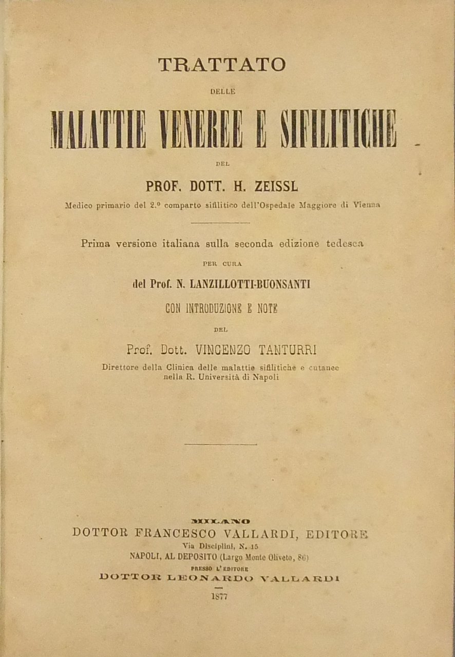 Trattato delle malattie veneree e sifilitiche. Prima versione italiana sulla seconda edizione tedesca per cura del Prof. N. Lanzillotti-Buonsanti