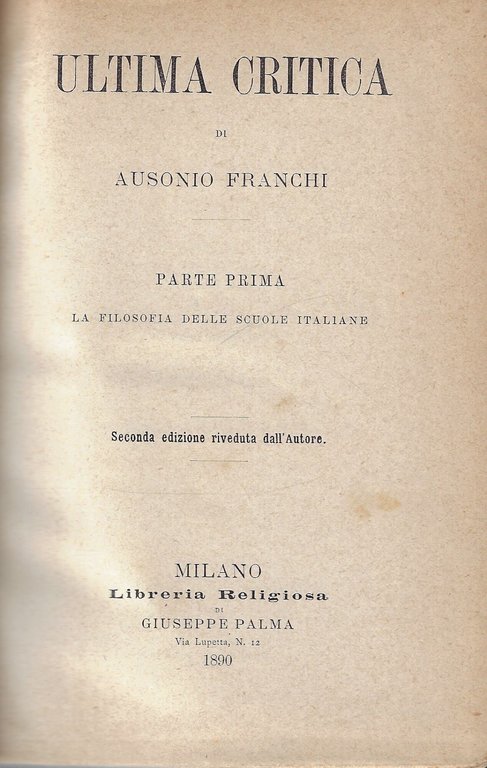 Ultima critica, parte prima: la Filosofia delle scuole italiane | Livres anciens et modernes | Franchi, Ausonio, ,Franchi, Ausonio