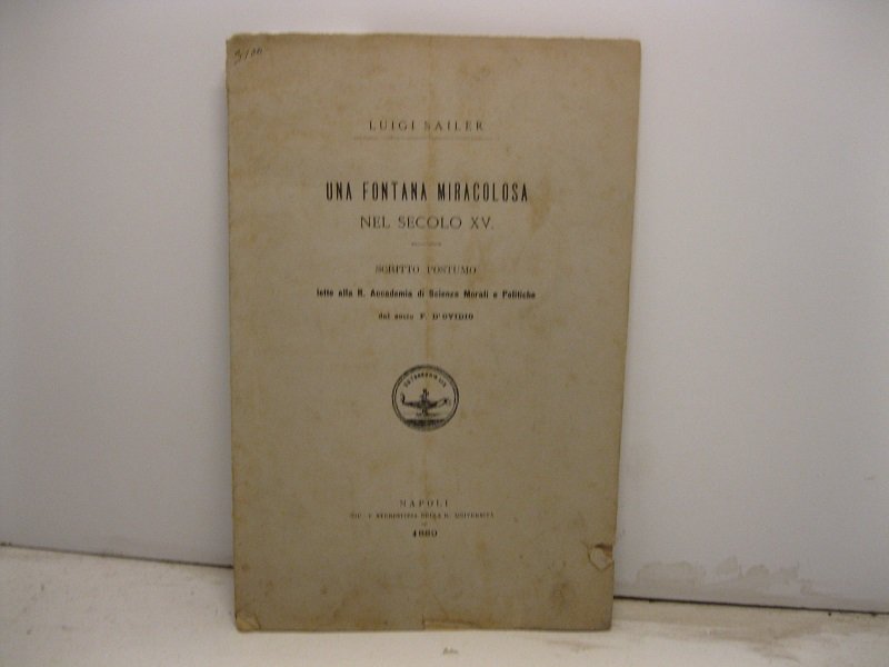 Una fontana miracolosa nel secolo XV. Scritto postumo letto alla R. Accademia di Scienze Morali e Politiche dal socio F. D'Ovidio | Livres anciens et modernes | Sailer Luigi