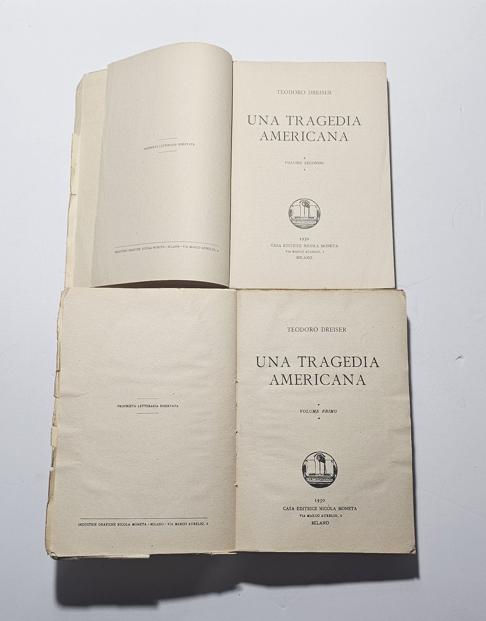 - una tragedia americana, teodoro dreiser, dreiser, letteratura americana, romanzo americano, nicola moneta, 1930, due volumi, narrativa novecento, libro d epoca, classici americani, edizione originale, io libro carmine, libreria antiquaria, romanzo americano 1930, letteratura americana novecento, edizione nicola moneta, libro antico narrativa, due volumi dreiser, edizione originale italiana, romanzo d epoca