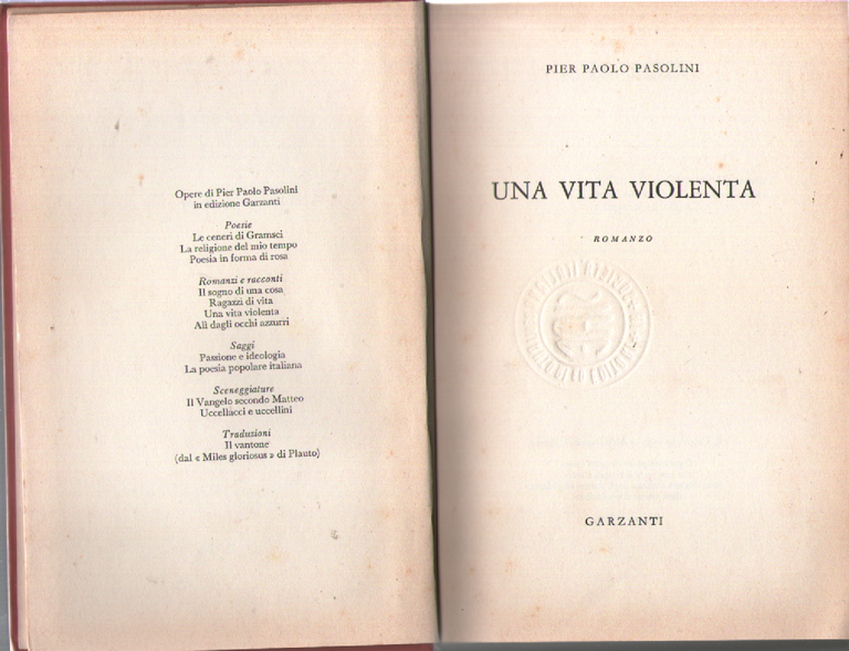 Una vita violenta | Livres anciens et modernes | P. P. Pasolini, ,P. P. Pasolini