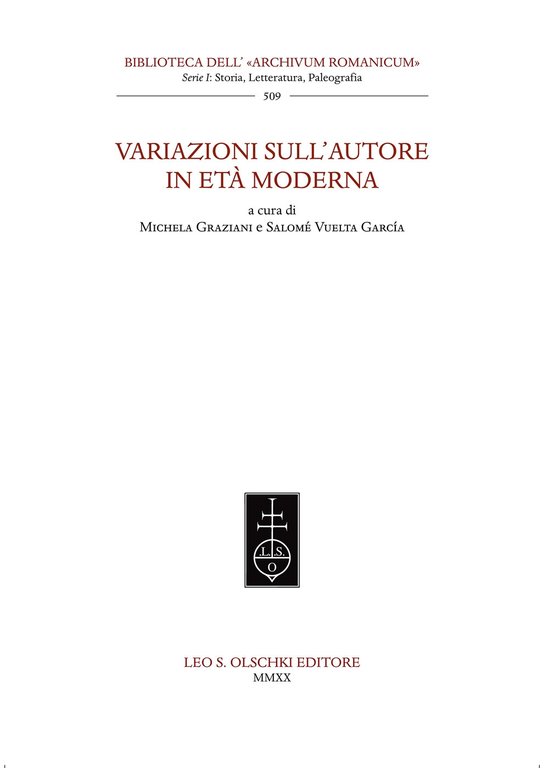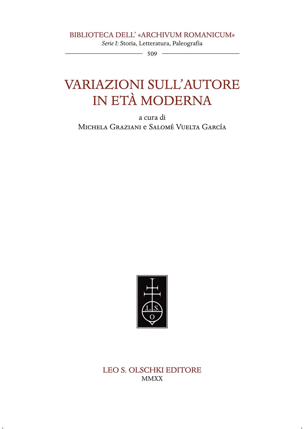 Variazioni sull'autore in età moderna, Firenze, Casa Editrice Leo S. Olschki, 2020 | Livres anciens et modernes | Graziani M., Vuelta Garcìa S., Graziani M., Vuelta Garcìa S., Graziani M., Vuelta Garcìa S.
