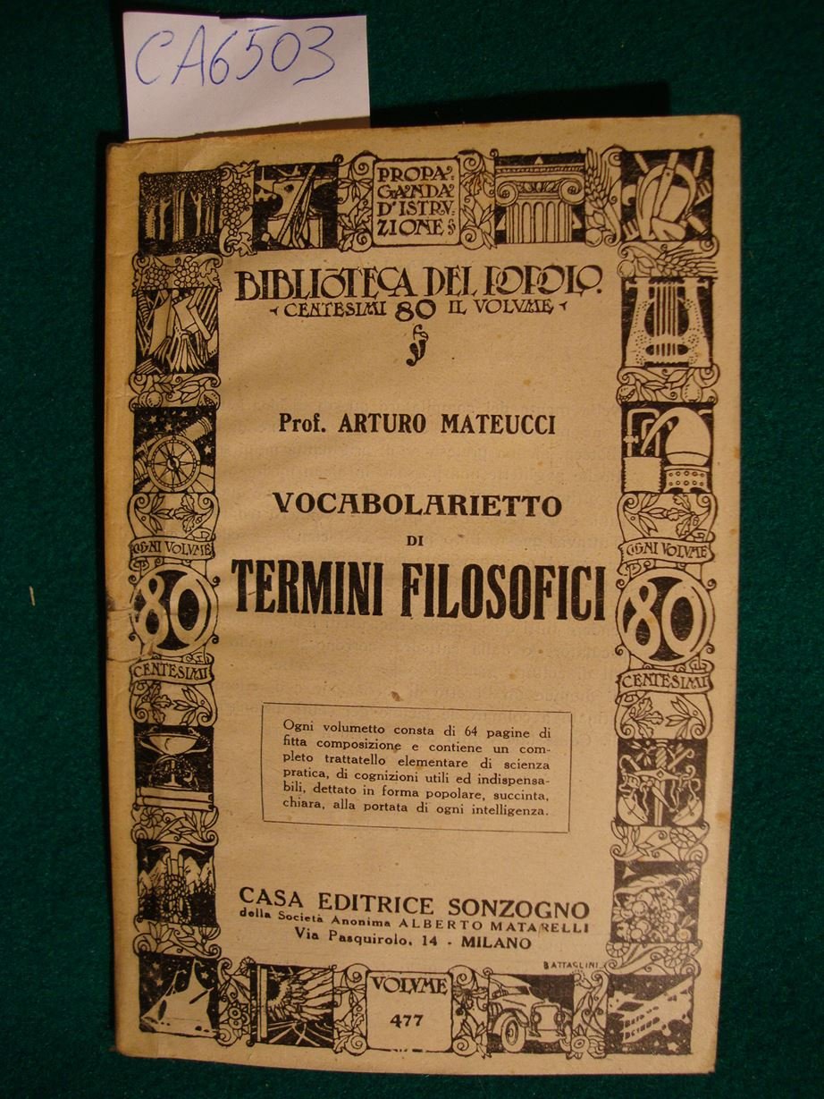 Vocabolarietto di termini filosofici | Livres anciens et modernes | Mateucci Arturo