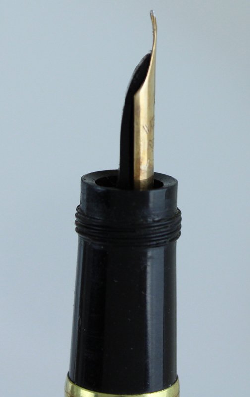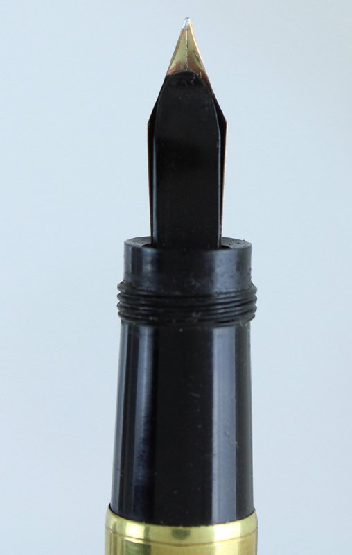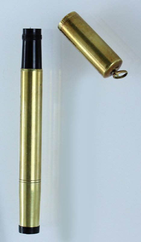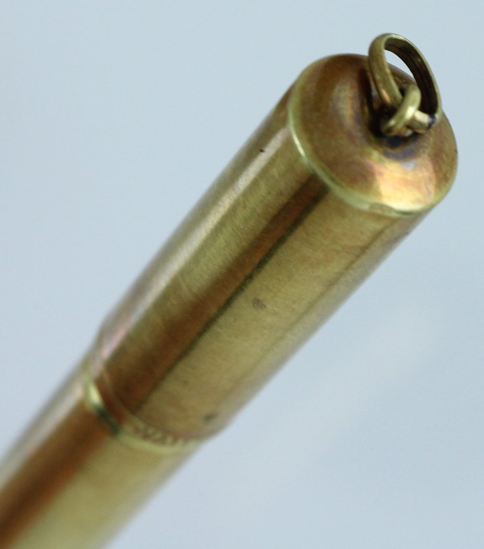 (Codice PN/0188) Laminata oro 18 Kt, corpo in ebanite, pennino oro originale 14 Kt. Lunga 122 mm. La marca è incisa sul margine del cappuccio. Movimento funzionante (ma molto duro), ermeticità non controllata. Splendido esemplare. ~~~ SPEDIZIONE IN ITALIA SEMPRE TRACCIATA