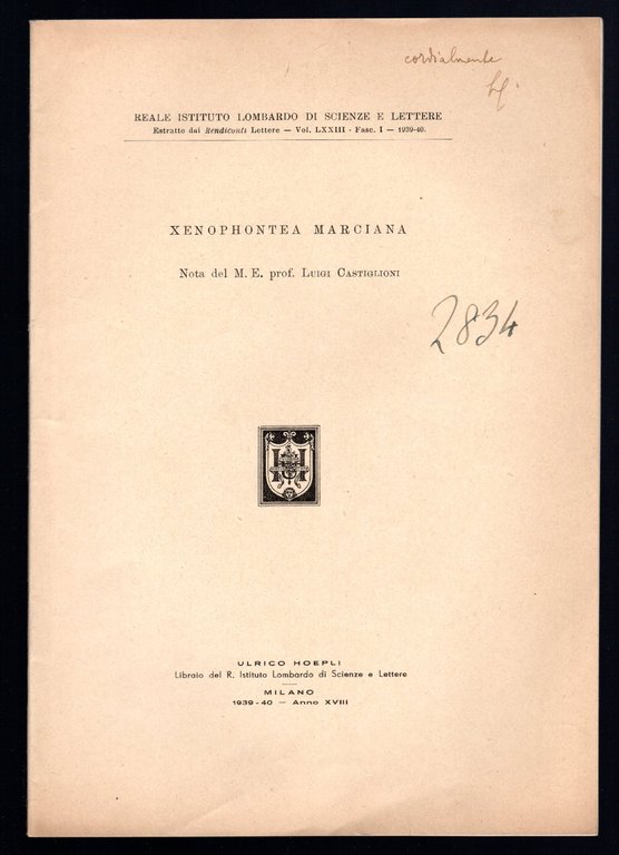 Opuscolo vintage in-8° con 27 pagg, Milano, 1908. Saggi. Testo in lingua latina. Estratto dai Rendiconti Lettere - Vol. LXXIII - Fasc. I - 1939-40 del Reale Istituto Lombardo di Scienze e Lettere. Note a matita in copertina.