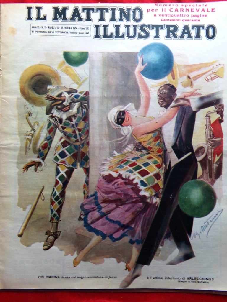 Colombina danza col negro suonatore di jazz: è l'ultimo infortunio di Arlecchino? (Ugo Matania)