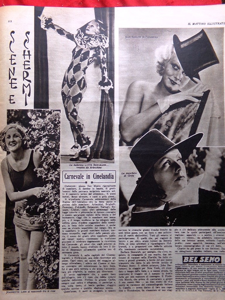 Scene e schermi: carnevale in cinelandia. Greta Garbo, Jean Harlow, Lotte Bergmann, Jeannette Linn