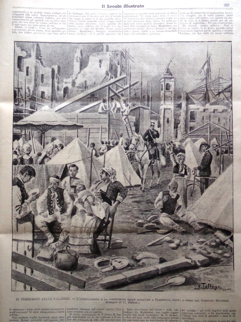 Il terremoto nelle Calabrie - l'attendamento e la costruzione delle baracche a Parghelia, fatto a spese del comitato milanese (C. Tallone)