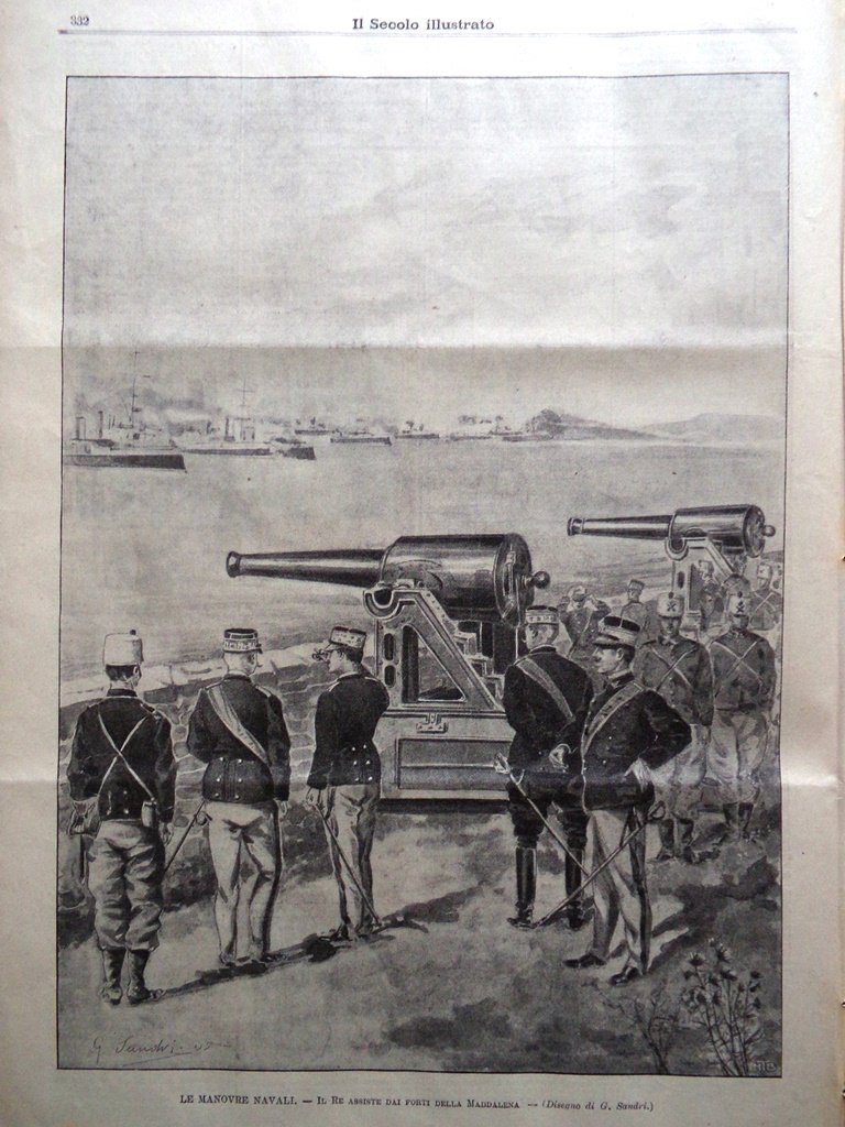 Le manovre navali - il re assiste dai forti della Maddalena (G. Sandri) (stampa)