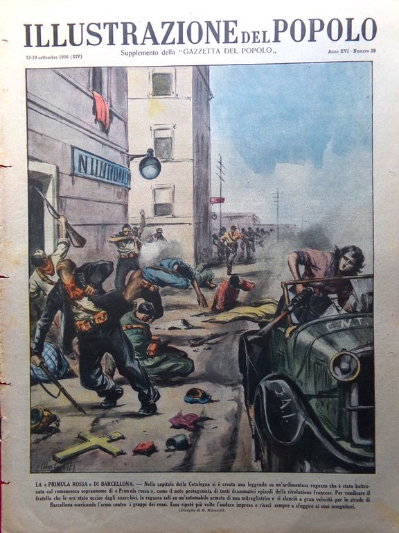 La "primula rossa" di Barcellona - nella capitale della Catalogna si è creata una leggenda su un'ardimentosa ragazza che è stata battezzata col romanzesco soprannome di "Primula rossa", come il noto protagonista di tanti drammatici episodi della rivoluzione francese. Per vendicare il fratello che le era stato ucciso dagli anarchici, la ragazza salì su un'automobile armata di una mitragliatrice e si slanciò a gran velocità per le strade di Barcellona scaricando l'arma contro i gruppi dei rossi. Essa ripetè più volte l'audace impresa e riuscì sempre a sfuggire ai suoi inseguitori (E. Mainetti)