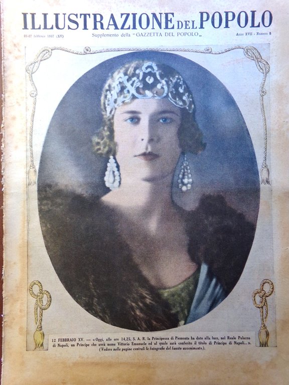 Illustrazione del Popolo 21 Febbraio 1937 Nato Vittorio Emanuele Trotzki Malaga