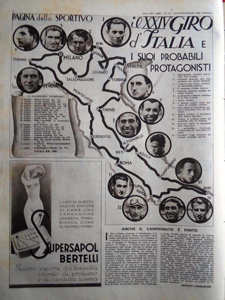 Illustrazione del Popolo 23 Maggio 1936 Esilio Negus Giro d'Italia Radio Impero
