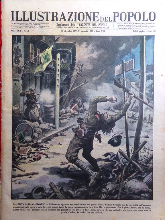 La "Mata Hari" giapponese: nell'esercito nipponico era popolarissima una giovane donna, Yohiko Momoaki, per la sua abilità nell'assumere informazioni sulle mosse e sulle forze dei nemici, tanto da essere soprannominata la "mata Hari" giapponese. Ora è giunta notizia che la donna, mentre vestita con l'uniforme kaki si avanzava con precauzione fin presso le linee cinesi, sorpresa da una sentinella alla quale non seppe dare la parola d'ordine, fu uccisa con una fucilata
