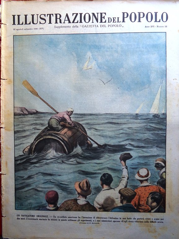 Un navigatore originale - un ex-soldato americano ha l'intenzione di attraversare l'Atlantico in una botte che porterà viveri e acqua per due mesi. L'eccezionale marinaio ha iniziato in queste settimane gli esperimenti, e i suoi ammiratori sperano ch'egli riesca vittorioso nella difficile prova (E. Mainetti)