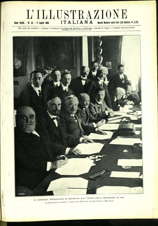 In-4, brossura (dorso cucito). In buono stato di conservazione. In questo numero:Il convegno interalleato di Bruxelles alla vigilia della conferenza di Spa.
