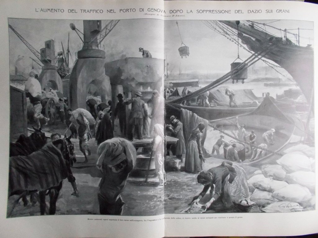 L'aumento del traffico nel porto di Genova dopo la soppressione del dazio sui grani (G. Amato) (stampa in 2 pagine)