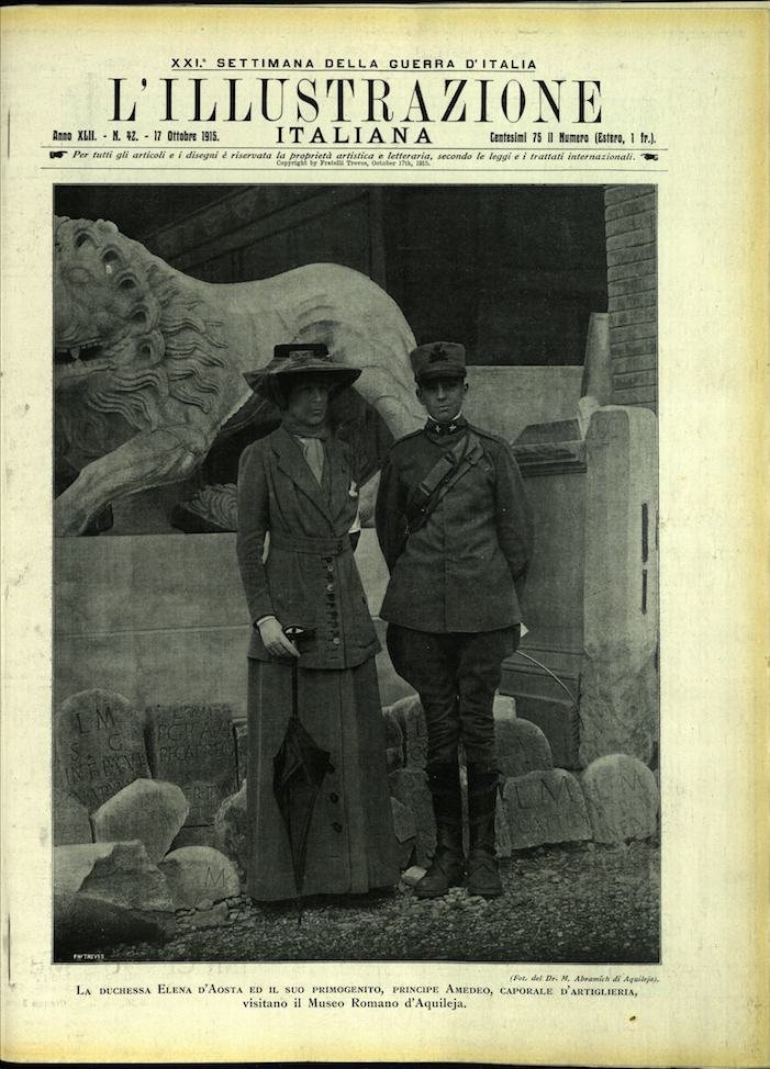 In-4, brossura. In buono stato di conservazione. In questo numero:La duchessa Elena d'Aosta e il suo primogenito, principe Amedeo, caporale d'artiglieria, visitano il Museo Romano d'Aquileja.