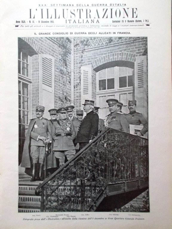 L'illustrazione Italiana 19 Dicembre 1915 WW1 Consiglio Guerra Tofano Kitchener