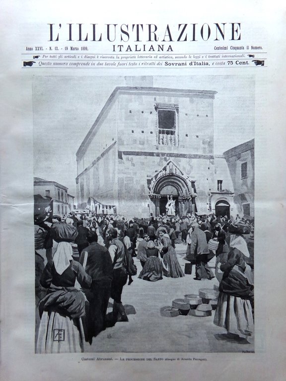 L'Illustrazione Italiana 19 Marzo 1899 Processione Santo Abruzzo Diga Nilo Fano