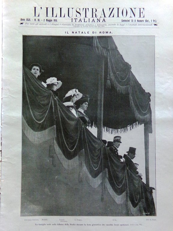 L'Illustrazione Italiana 2 Maggio 1915 WW1 Natale Roma Avezzano Ruggeri Trieste