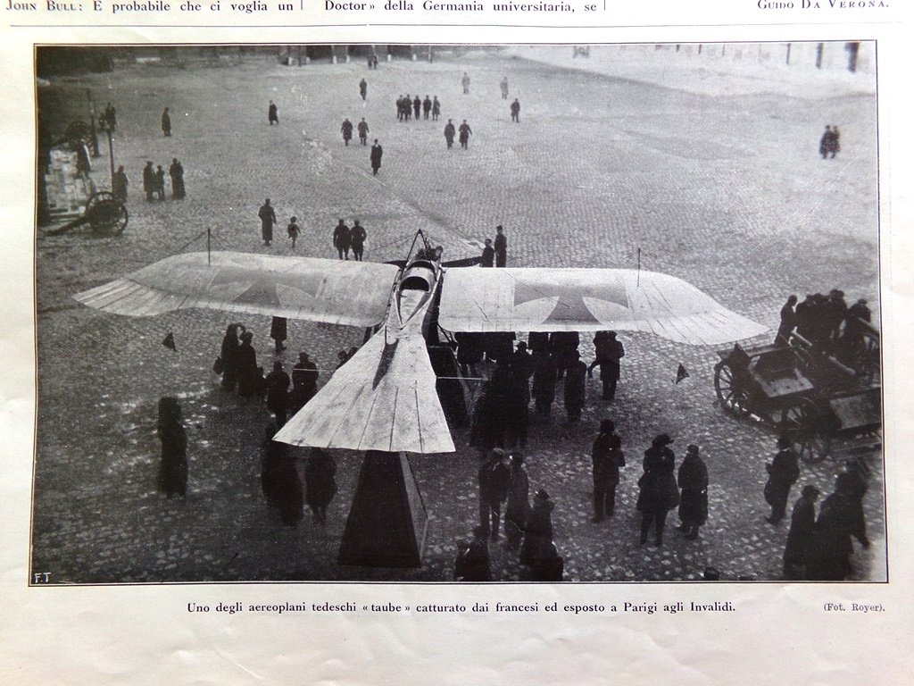 Uno degli aeroplani tedeschi "taube" catturato dai francesi ai tedeschi